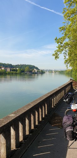 Day 9 already!….. Time’s passing by. After another gut-busting breakfast, I hauled myself onto the bike and freewheeled down to the Saone river North of Lyon with the first job being to negotiate the city via its many cycle ways. it looked pretty simple on the map when I plotted the route. What the online map failed to tell me about was the vast myriad of roadworks that were going to be happening once I’d crossed via the Pont Robert Schumann (It’s a bridge). It appeared that this entire area was being dug up for major sewer renewal works. Temporary traffic lights every 50 yds or so, no lane segregation and several thousand Lyonnaise trying to get to their work. This commotion of car horns, japanese scooters and buses continued down the East bank of the river until I could at last divert east away from the Saone for the last time. The idea was to take the tunnel (cyclists have their own one!) across to meet the Rhone river just before these two waterways merge. However, due to a moment of confusion, the whole tunnel thing didn’t register with my then-addled brain (probably due to the large breakfast). I instead continued and weaved my way through the traffic and streets, at last finding the Rhone – and probably a little quicker than the original plan.