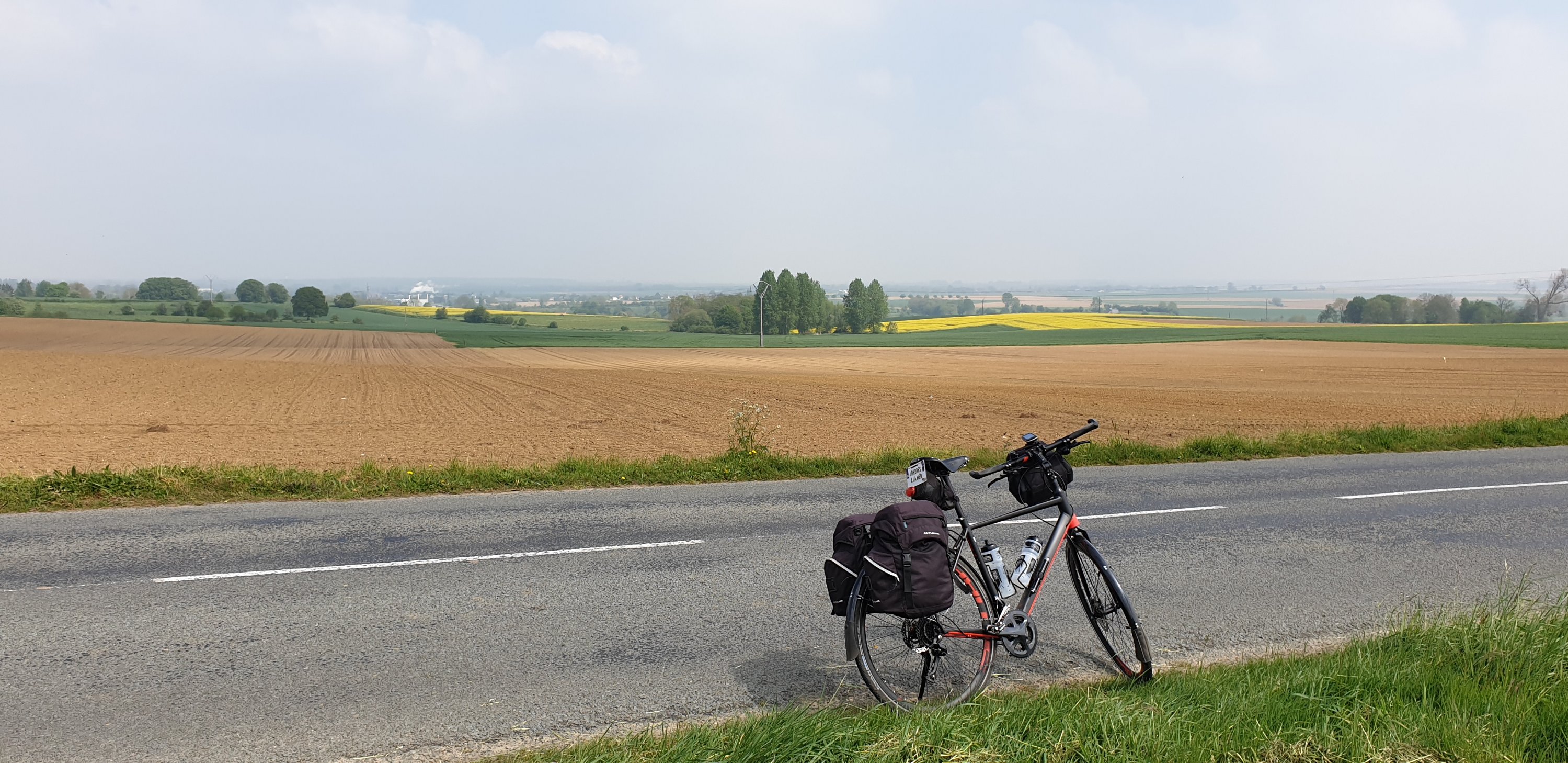 My host in Marle laid on a breakfast fit for a king this morning. Breads, pastries, cakes. An utter carb-fest! Afterwards, I was actually ready for a lie down and not spend half a day on a bike. After waving goodbye to Monsieur et Madame, I pedalled off only to stop after 25yds as my Garmin watch had crashed. A quick look on Google on how to reset it and I was away again. 2 miles later after a long climb out of the town I was at the bus stop in the little village, Autremencourt. This is where my knee finally refused to bend anymore back in September. It was a good psychological victory to get here this morning.