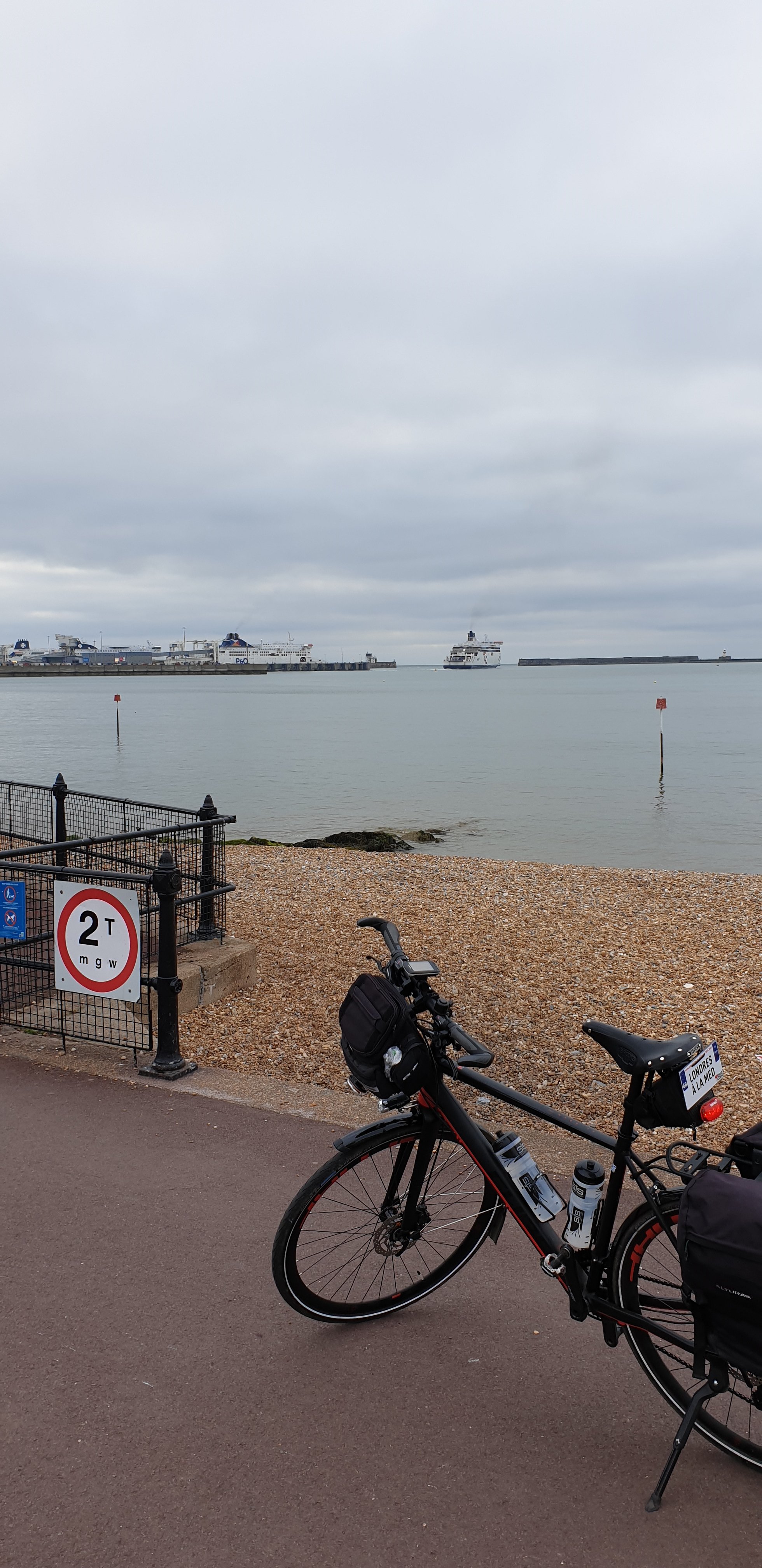 The Folkestone weather was similar to London’s the previous day with the continuing Baltic easterly wind coming in off the North Sea. Folkestone isn’t too far off sea level and the route to Dover ferry port involves a 2 or so mile climb followed by an 8 mile downhill. The climb up Dover Hill is brutal. Halfway up it feels like you heart is going to burst out of your chest and your breakfast burst from elsewhere! This hill concluded the climbing for England and it was a relief to start descending for Dover. However, the wind had other ideas which meant pedalling all the way down. I even stopped at one point to spin both wheels as it felt like the brakes were sticking.